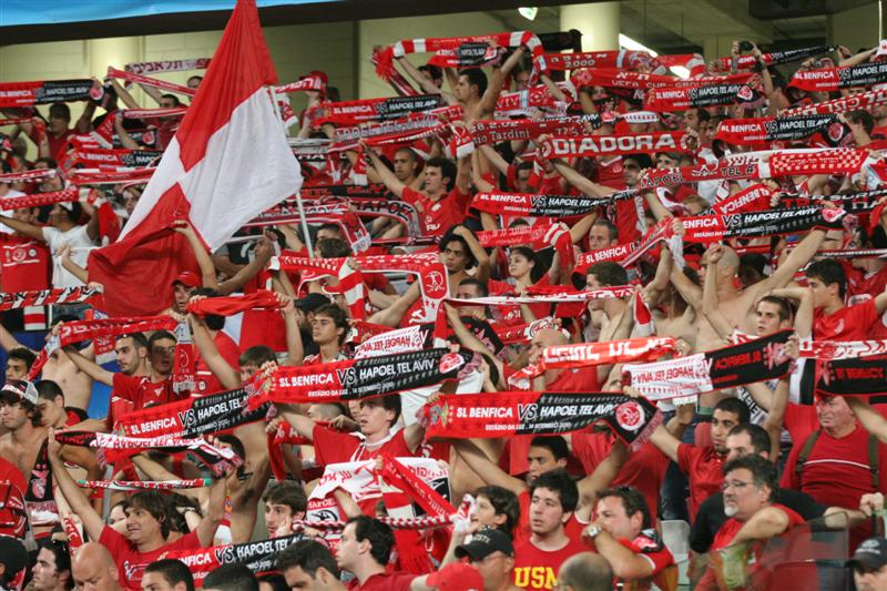 No lado benfiquista, a Sul um excelente lençol dos NN (que sempre que abrem um...dá 3 pontos...) com os símbolos históricos do Benfica. Mas mais importante que isso, a arrepiante homenagem aos 3 de Split. Em boa hora os NN decidiram recuperar essa homenagem anual. Mais umas tochas aqui e ali a dar cor, juntamente com as habituais bandeiras. O apoio vocal é que ficou abaixo das capacidades. Muito empenho a cantar contra os adversários mas muito abaixo no resto do jogo. São capazes de muito muito mais tal a força que têm.