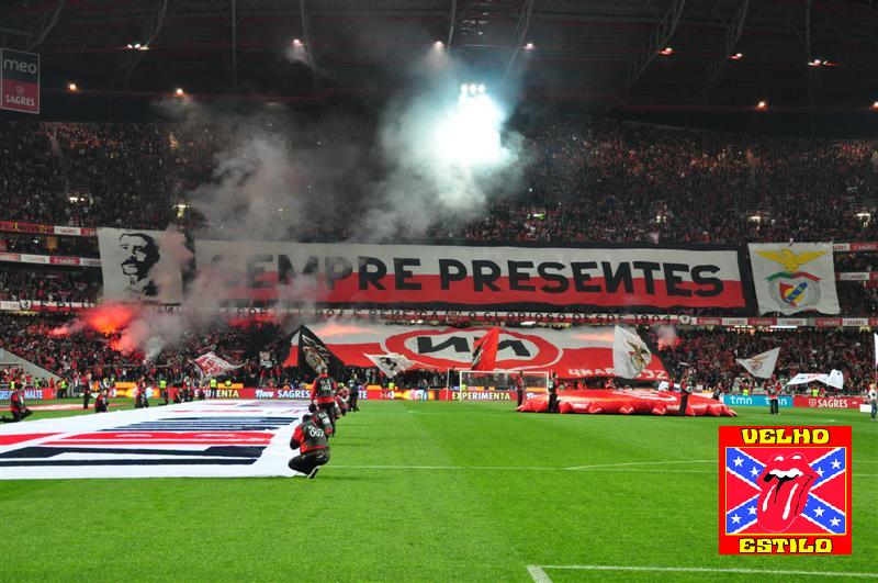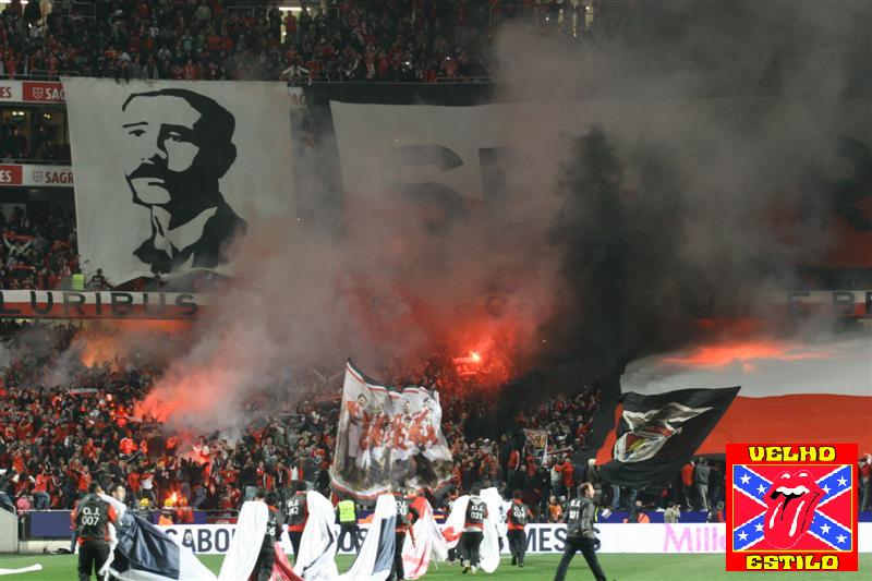 As equipas aquecem. As coreografias preparam-se. Do lado dos NN festeja-se o 20º Aniversário (4 de Março de 1992) com uma coreografia de excelente efeito, a mostrar que por vezes as coisas com mais simplicidade são espectaculares. Símbolo histórico, Símbolo SLB, Símbolo do Fundador do Benfica e Lema Histórico. Simples e eficaz. Com ajuda de umas tochas e fumos. Parabéns pelo aniversário.